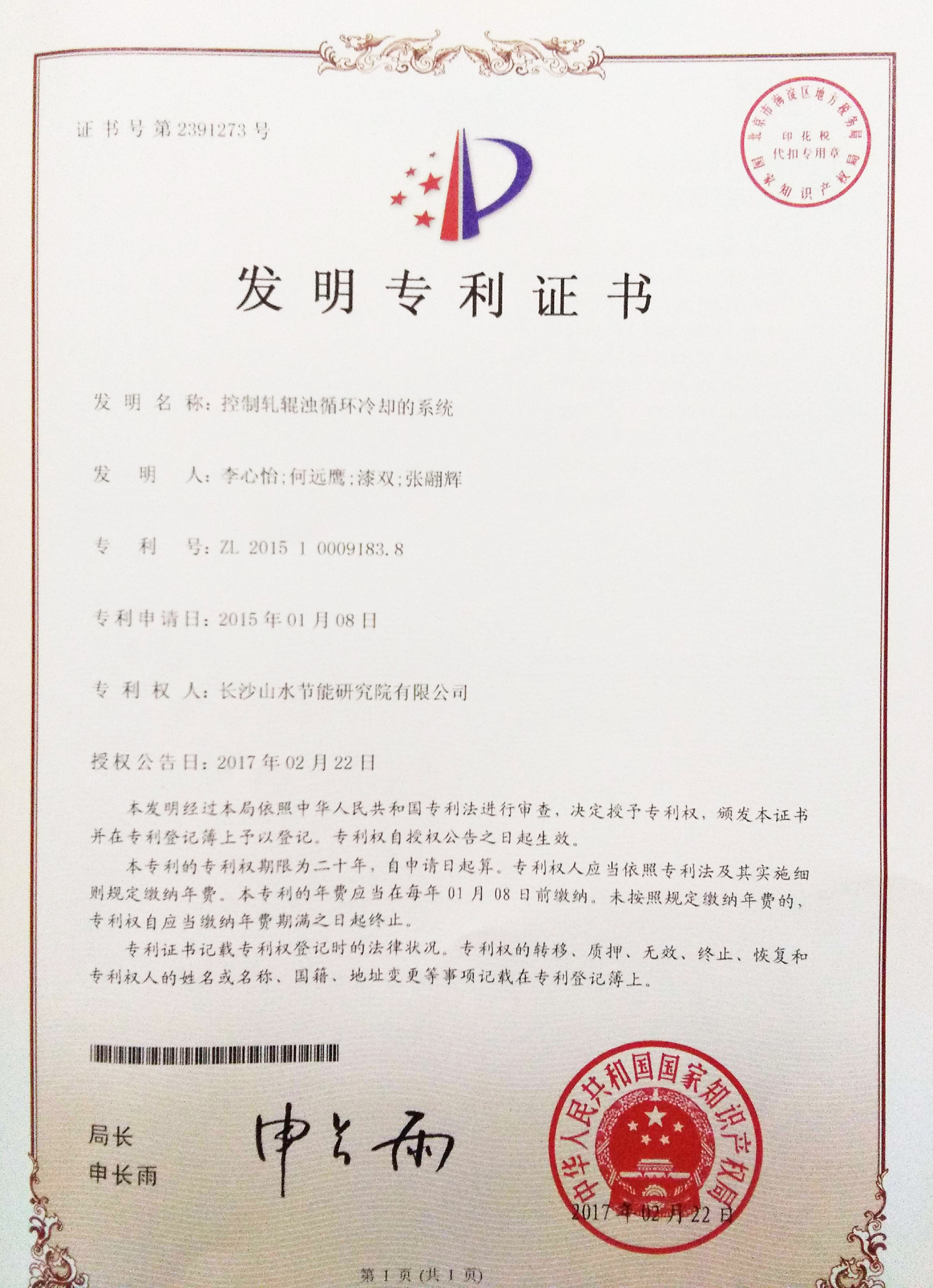 3-6月份,我司3項發明專利獲得國家知識產權局授權,此3項專利名稱為“控制軋輥濁循環冷卻的系統”,專利號為ZL201510009183.8;一種帶加寬葉輪出口調節裝置的可調泵,專利號為201410544878.1一種帶減窄葉輪出口調節裝置的可調泵專利號為201410544541.0。標志著我司在工業循環水系統節能領域技術創新上邁出重要一步。