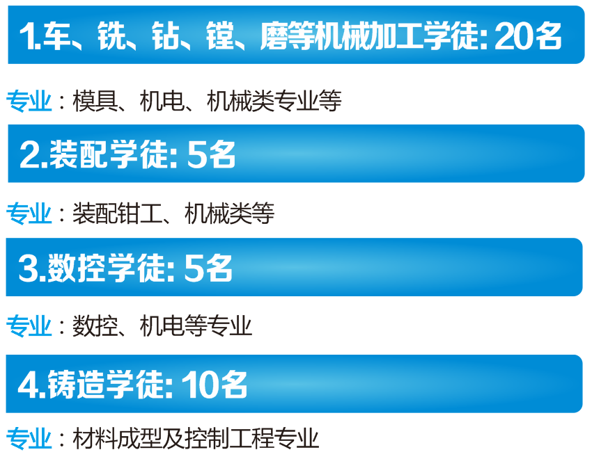 管理通道: 學徒-專業技工-班長- 技術副主任-車間主任