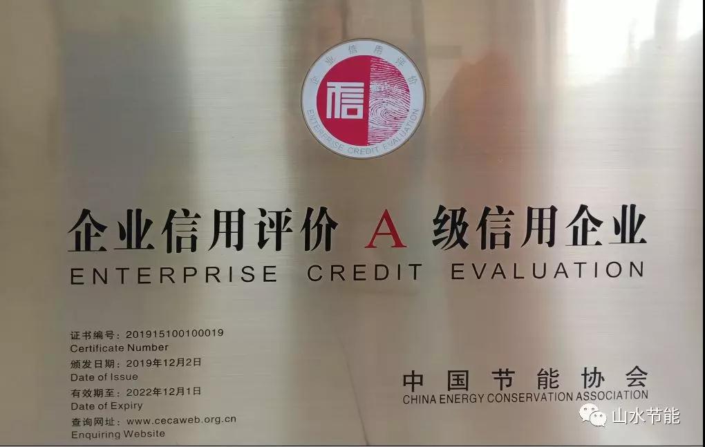 喜訊 | 山水節(jié)能榮獲中國節(jié)能行業(yè)A級企業(yè)信用等級榮譽(yù)
