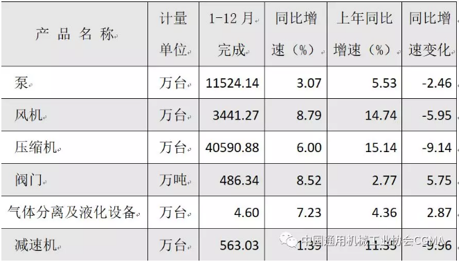 表一:2018年1-12月通用機械主要產品產量完成情況